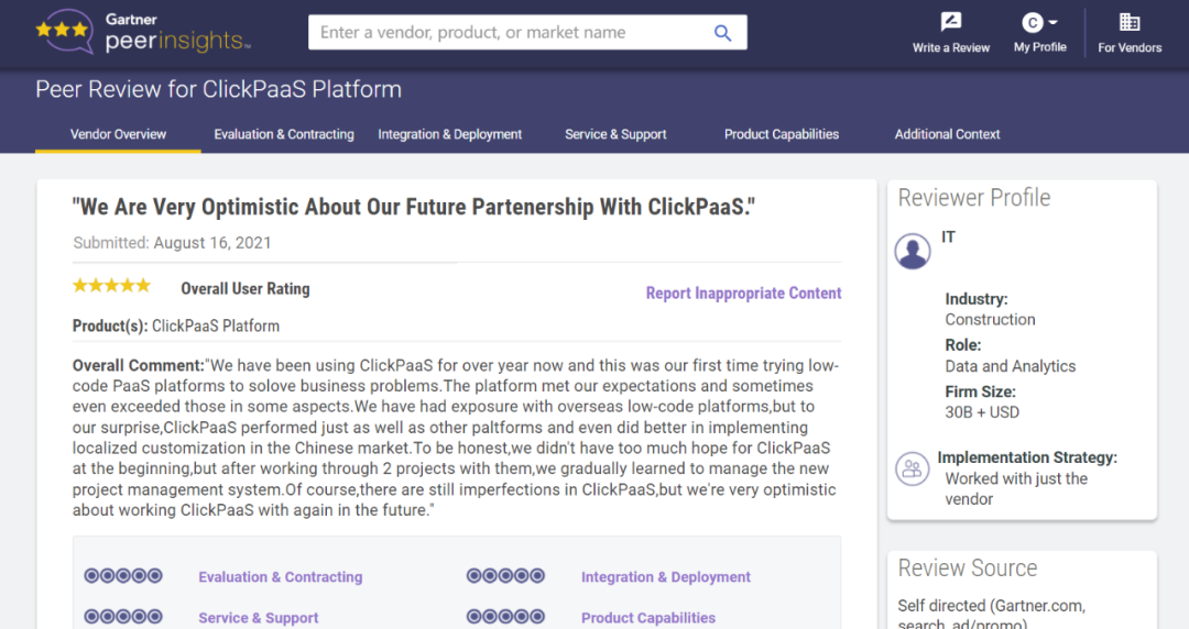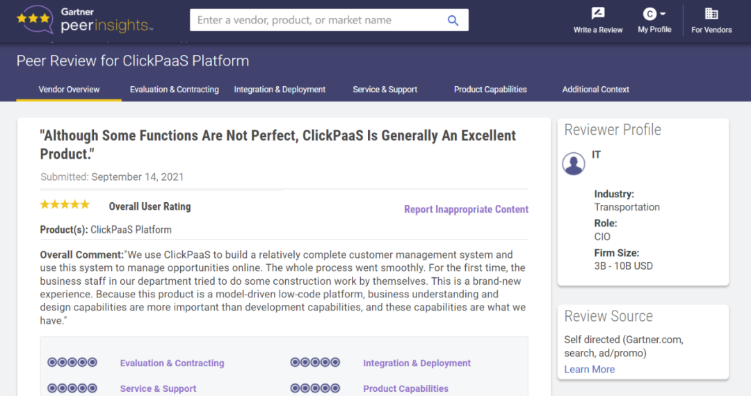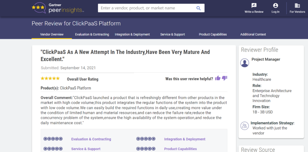 Tips::::【Peer Insights】——用户对企业IT产品和服务发布真实评价的平台。。。目前已有355个市场,,,255,000条经过验证的评价。。。。每一条评价Gartner会针对参评企业营收规模及参评人员信息做验证、、、评价内容做多维核实。。
